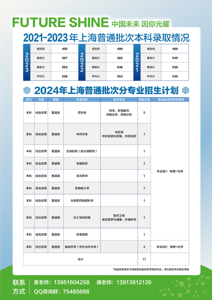 2024年上海宣传单页(含录取分数、招生计划、选科要求及联系方式)