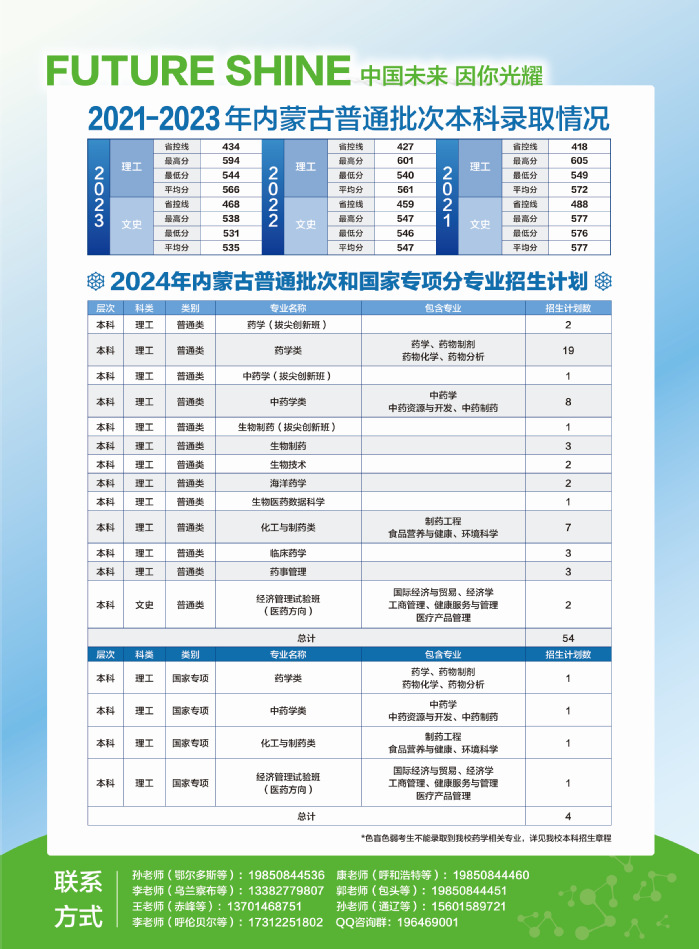 2024年内蒙古宣传单页(含录取分数、招生计划、选科要求及联系方式)