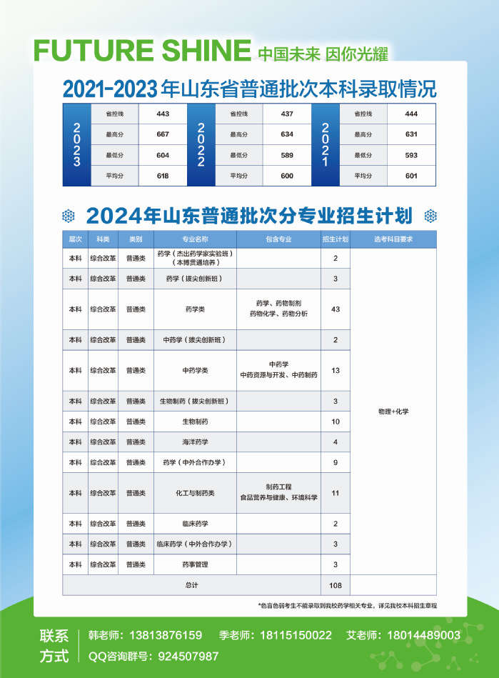 2024年山东宣传单页(含录取分数、招生计划、选科要求及联系方式)