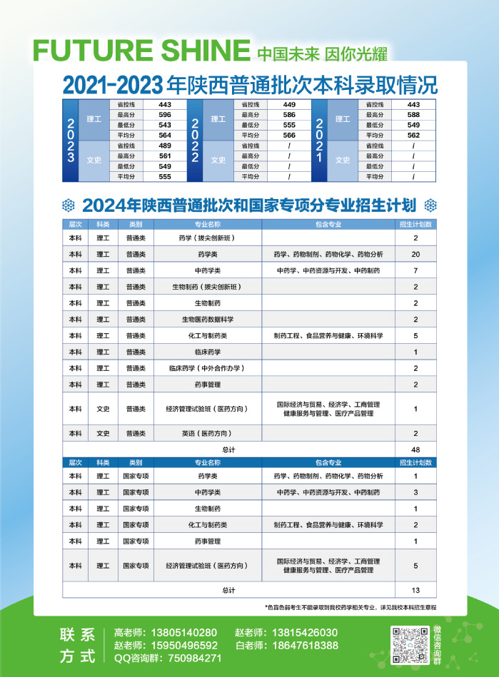 2024年陕西宣传单页(含录取分数、招生计划、选科要求及联系方式)