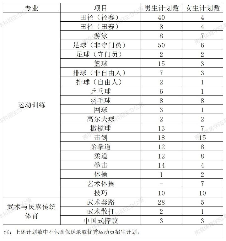 2025年 : 南京体育学院2025年运动训练、武术与民族传统体育专业分项目招生计划