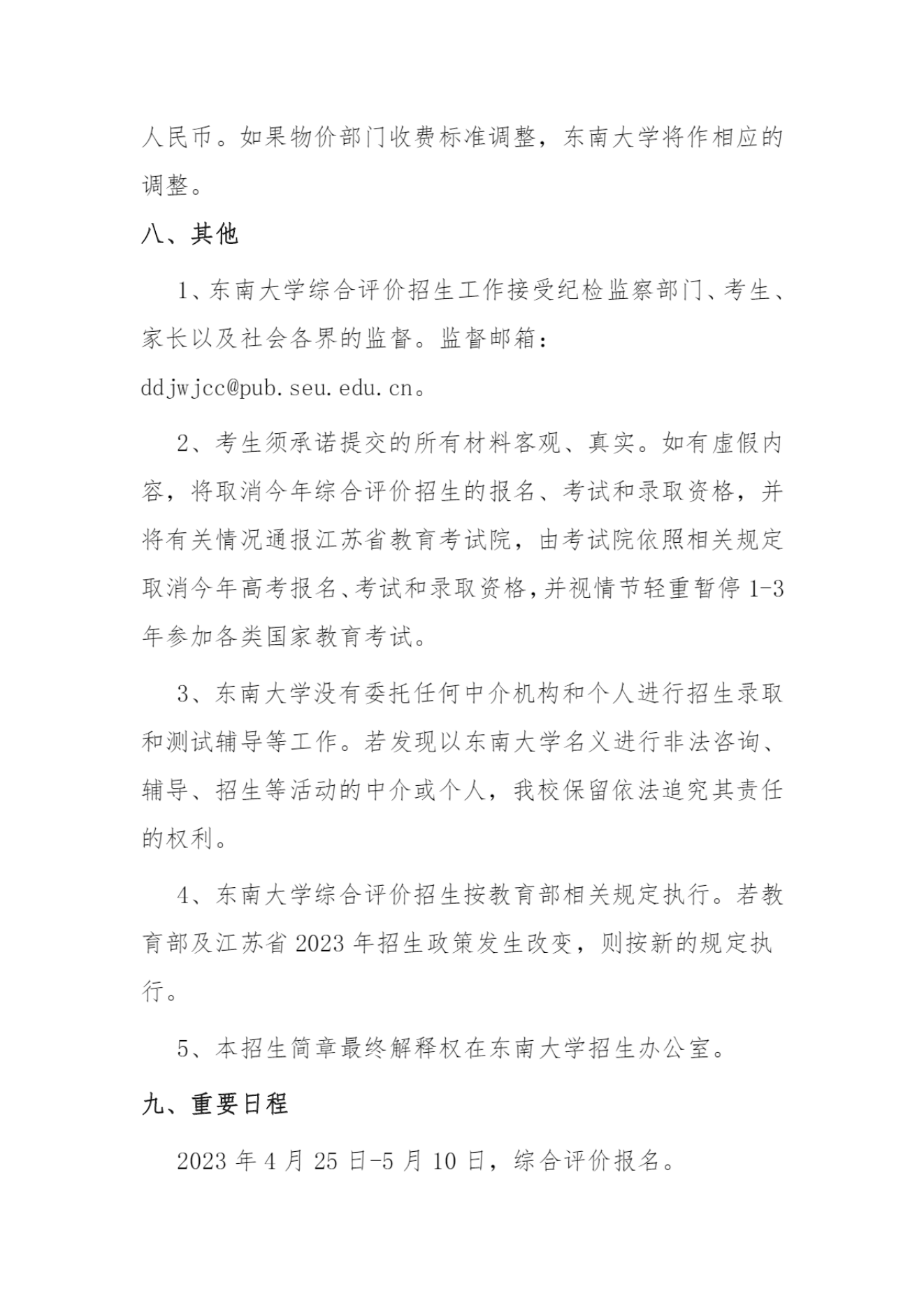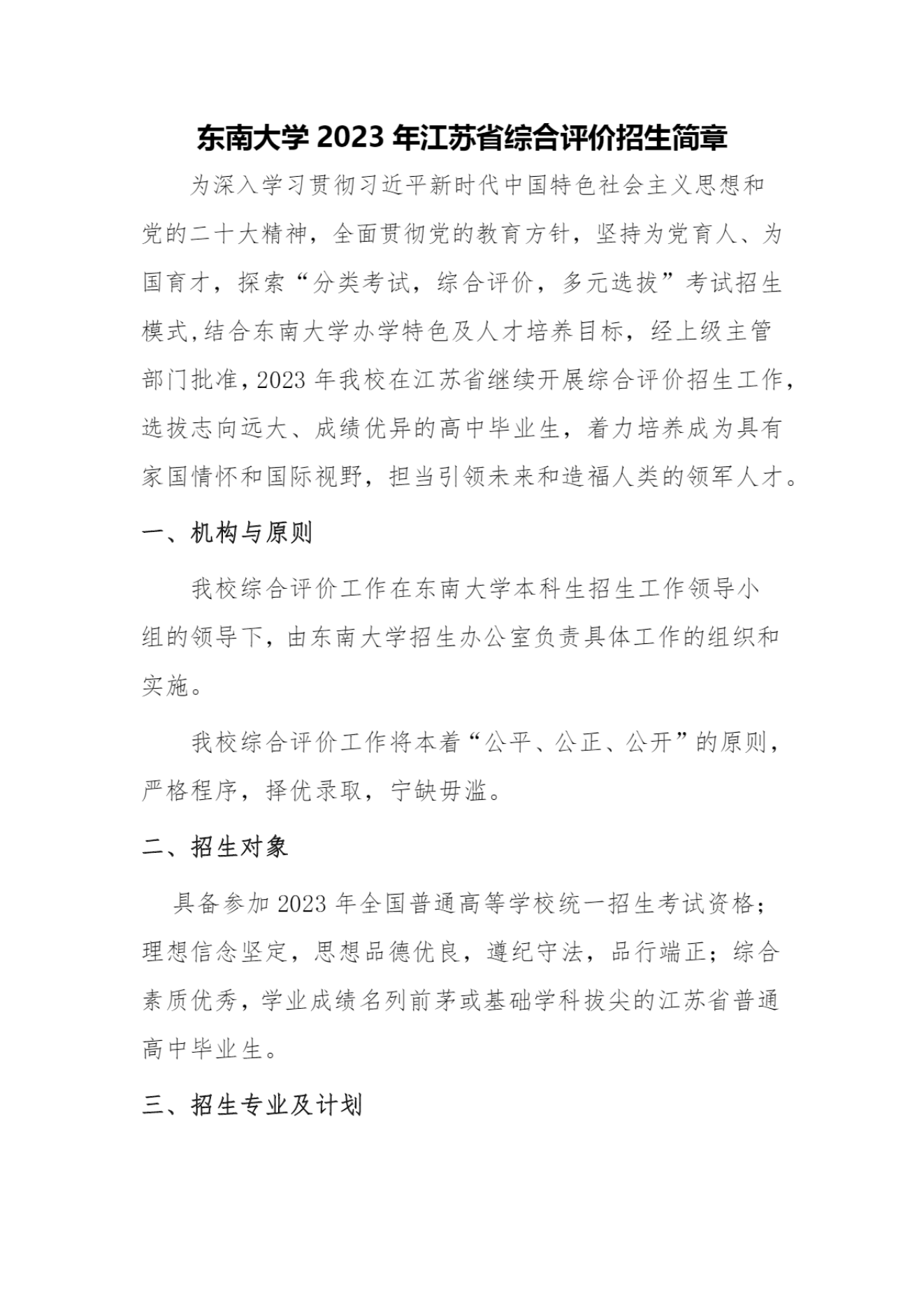 2023年 : 东南大学2023年江苏省综合评价招生简章