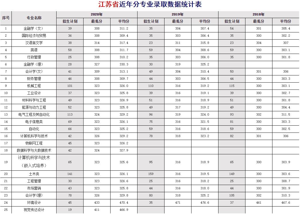 中国矿业大学徐海学院-江苏省2020-2015年分专业录取数据统计表