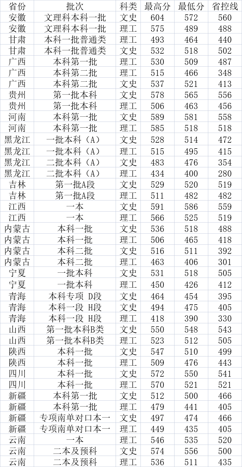 2021年 : 常州大学2021年各省招生录取分数线汇总表