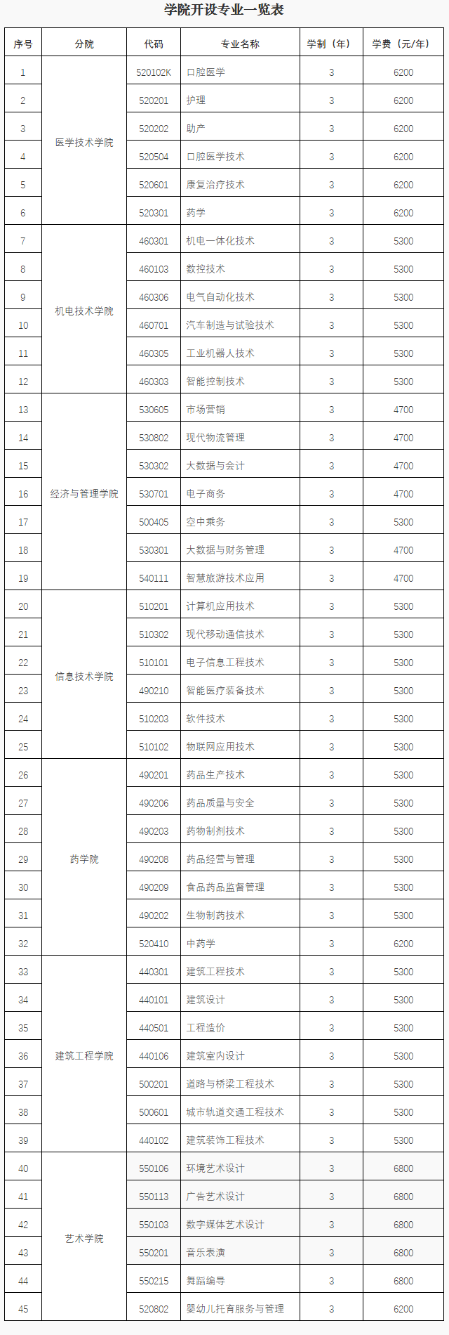 学院坐落在泰州国家级医药高新区核心区域——中国医药城,占地面积72.11公顷,是全国高职院校一流的现代化校园、生态校园和智慧校园。设有医学技术学院、机电技术学院、经济与管理学院、信息技术学院、药学院、建筑工程学院、艺术学院、马克思主义学院、继续教育学院和基础科学部等9院1部。2020年,学院设置专业44个。现有教职员工658人,专任教师403人,高级职称教师192人,其中正高教师29人,硕士及以上学位教师282人,双师素质教师353人,占87.6%。各类全日制在校生9635人,成人学历教育在籍学生9241人,年社会培训20000人次以上。办学62年来,学院为泰州和长三角地区培养各类优秀人才8万余人,被誉为“孵化工程技术、管理人才的基地;培养白衣天使、口腔卫士的摇篮”。