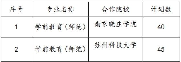 3+2师范专科与普通本科分段培养项目分别为南京晓庄学院、苏州科技大学与苏州幼儿师范高等专科学校合作项目。