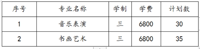 备注:音乐表演专业的器乐方向学校提供钢琴、二胡和琵琶三个选项。