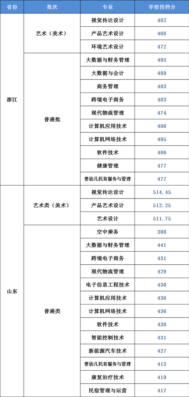 2021年 : 南京城市职业学院2021年招生省份高考录取线