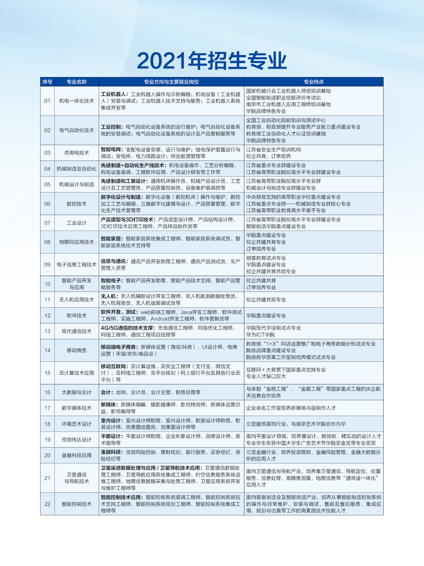 • 南京机电职业技术学院2021年普高招生简章(图)
