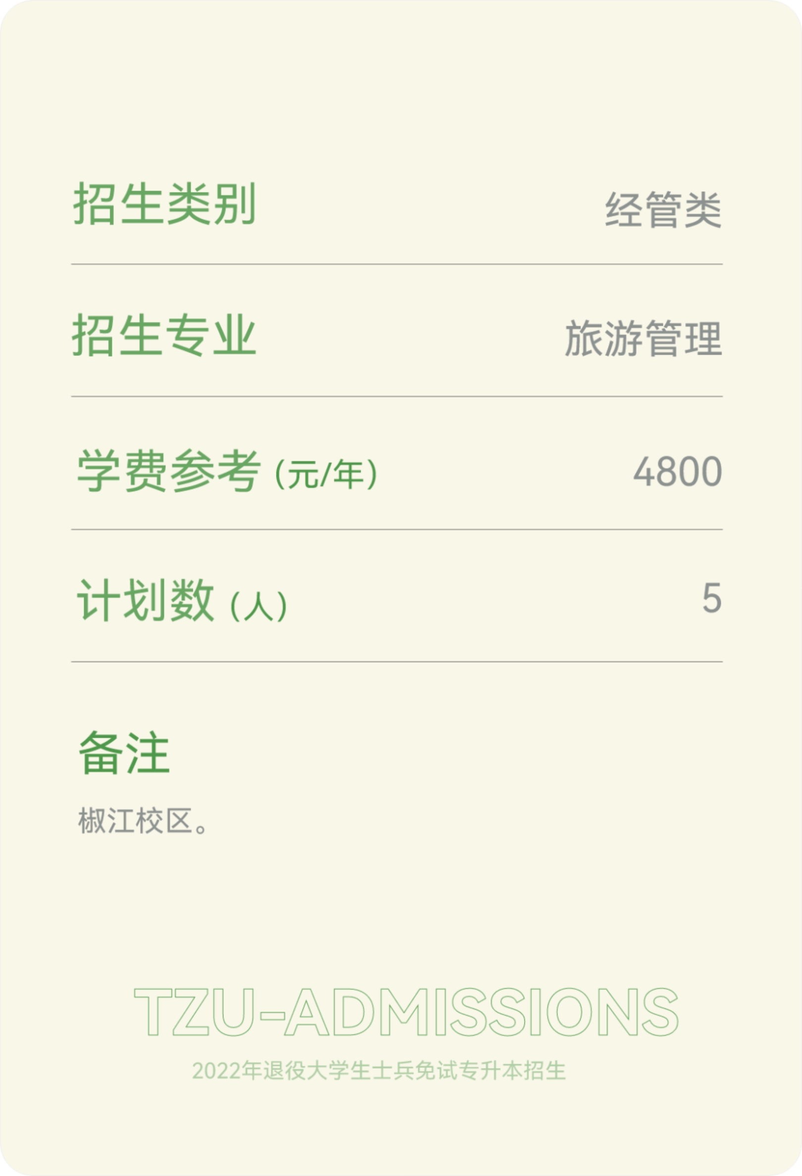 台州学院2022年退役大学生士兵免试专升本招生章程