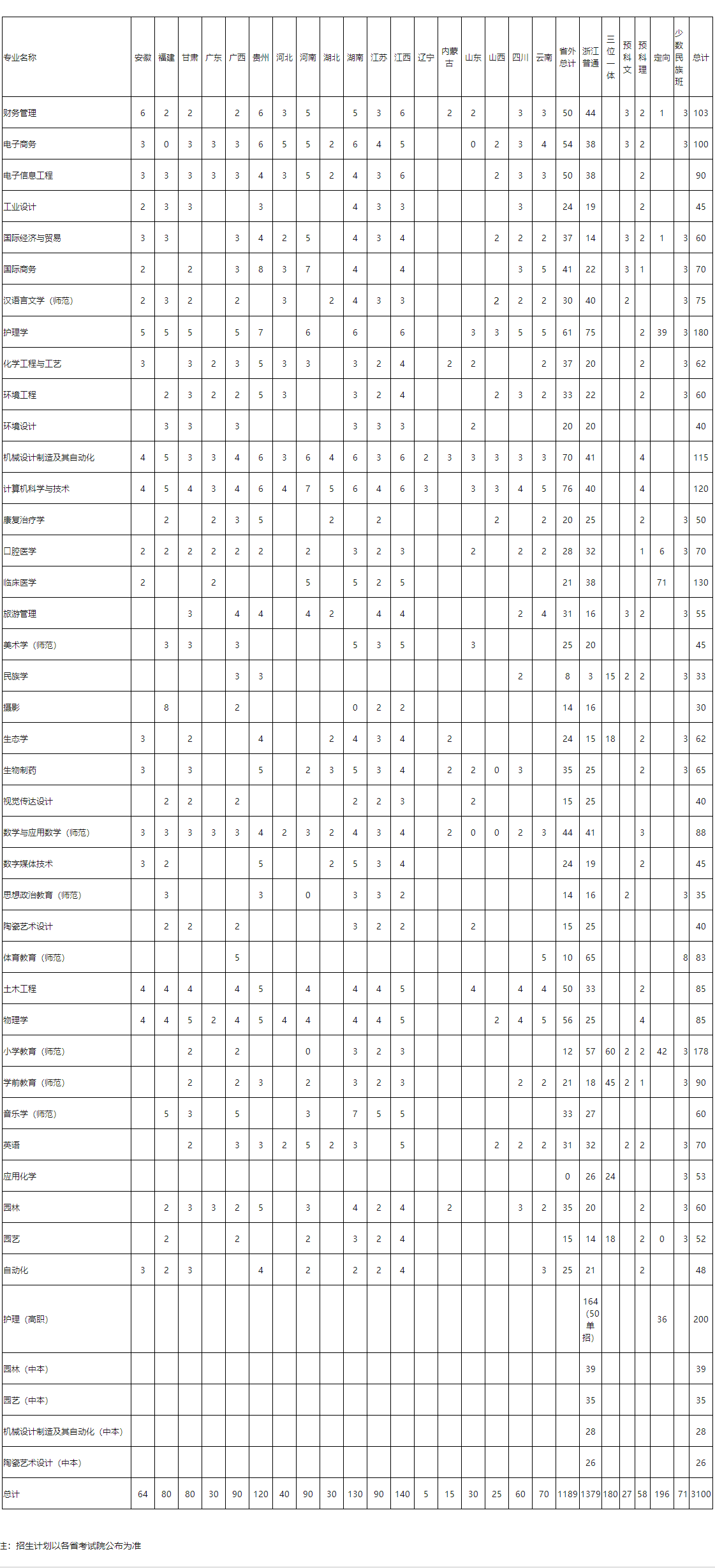 2022年 : 丽水学院2022年分省分专业招生计划表