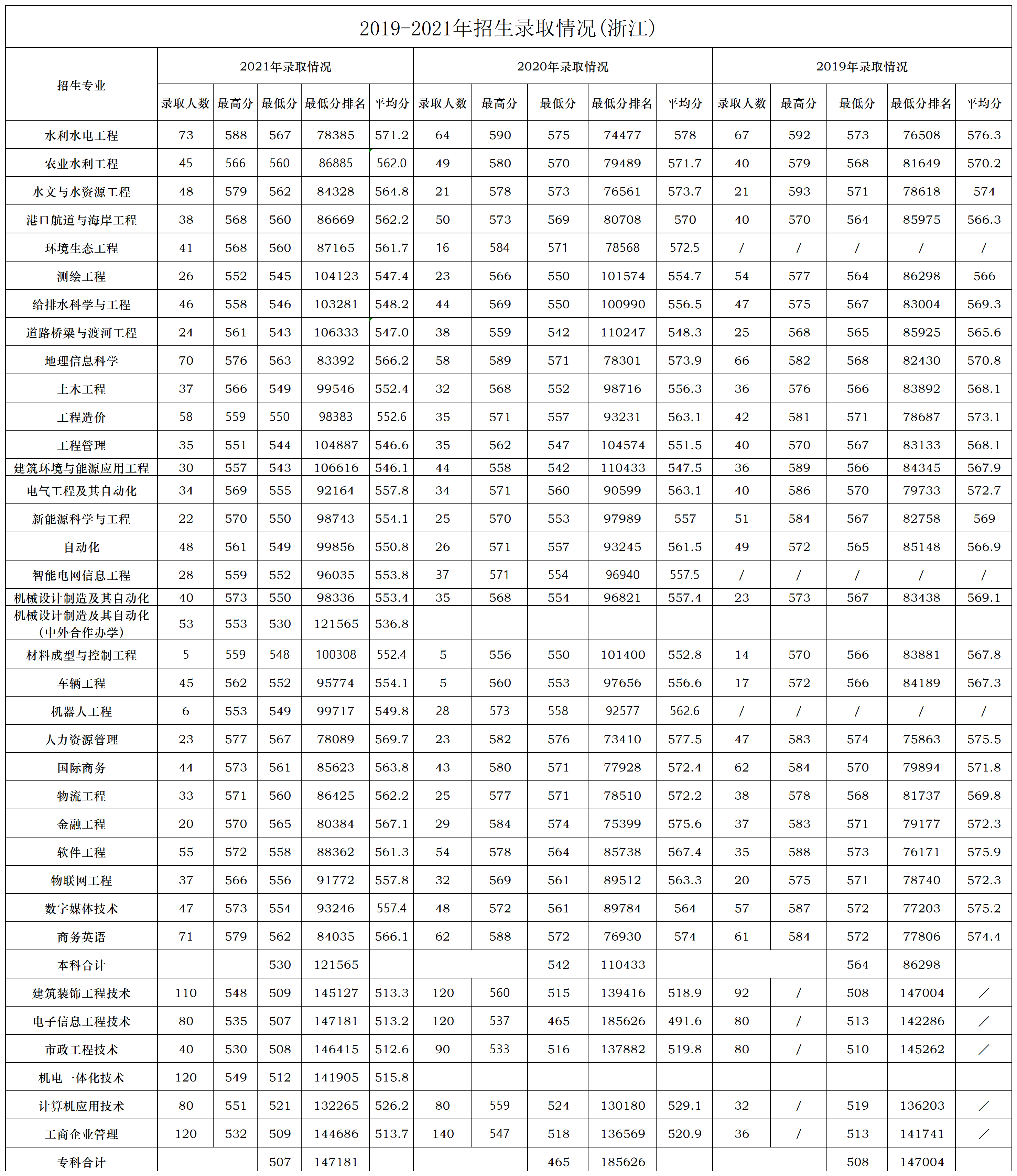 2021年 : 浙江水利水电学院2019-2021年招生录取情况(浙江)