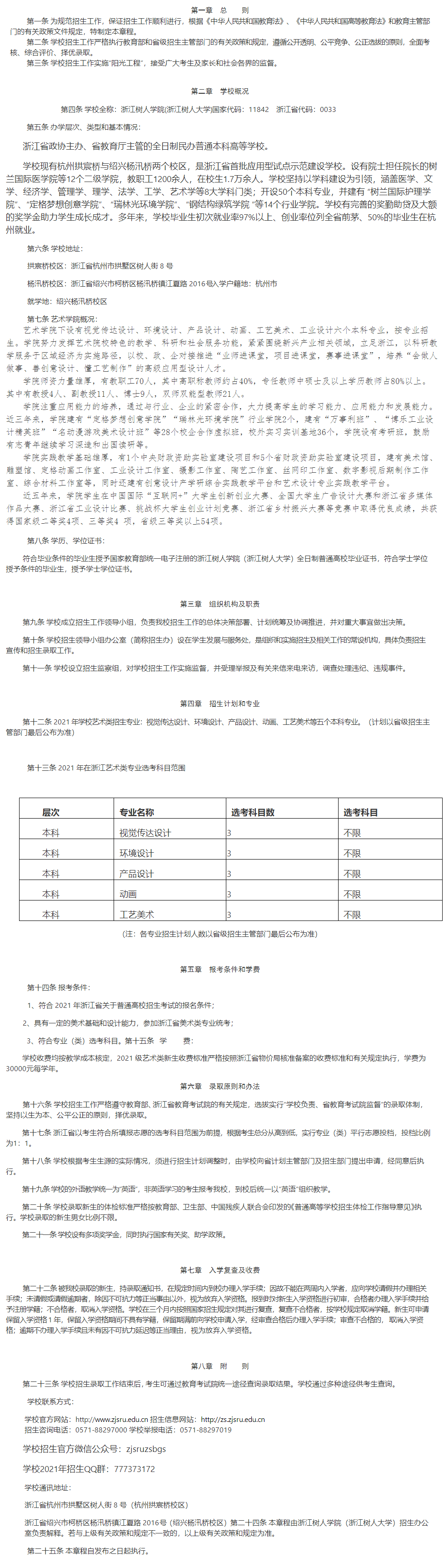• 浙江树人学院 2021 年艺术类专业招生简章