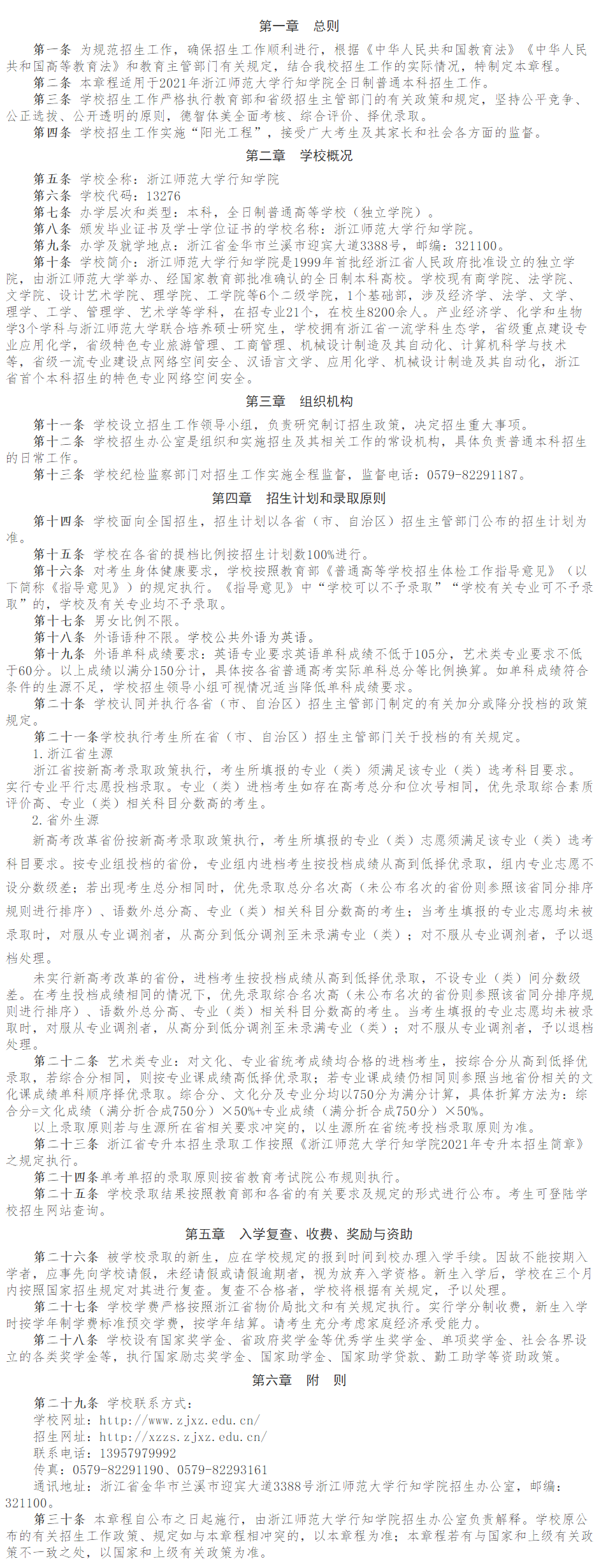 2021年 : 浙江师范大学行知学院2021年招生章程