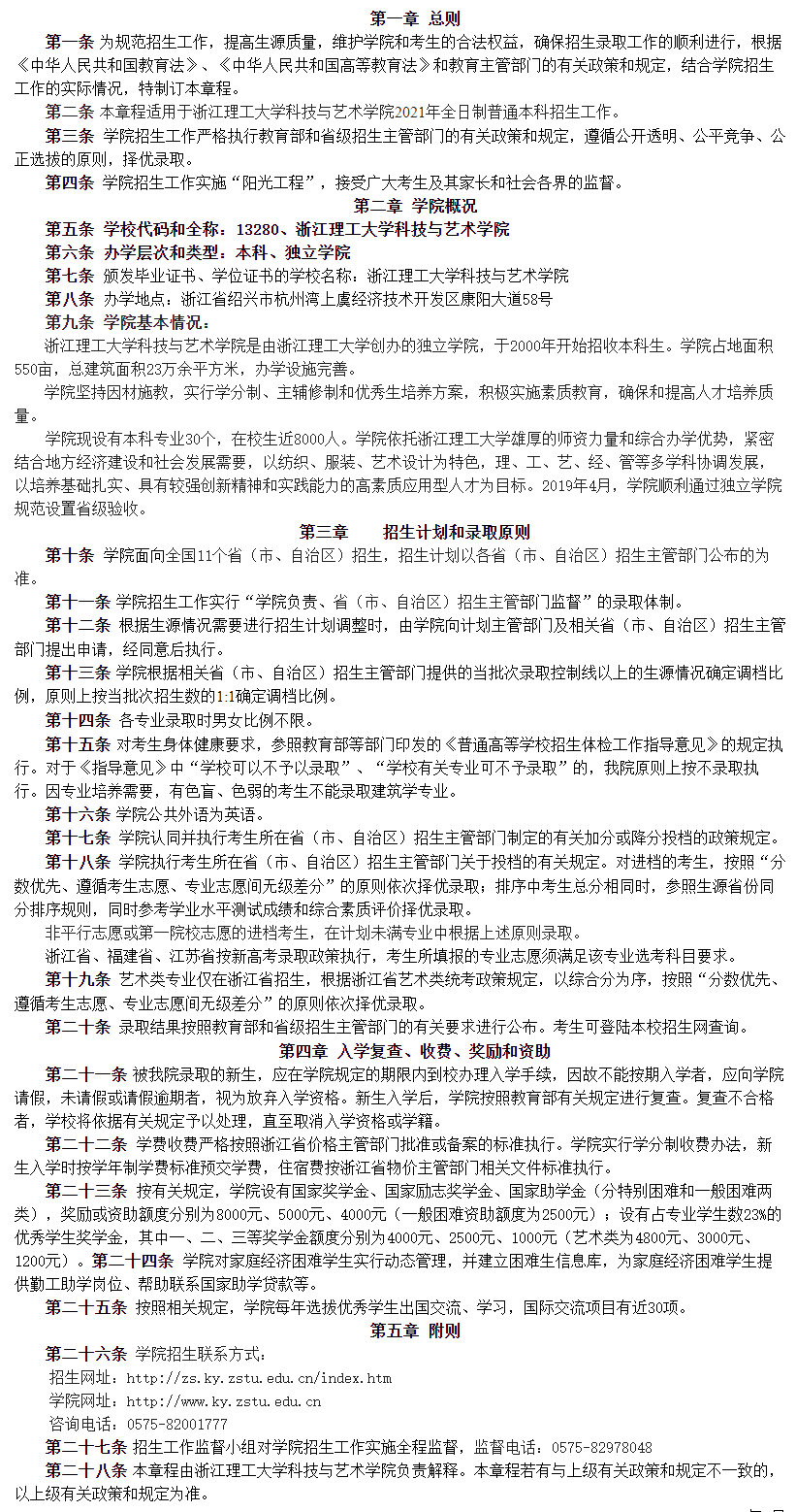 2021年 : 浙江理工大学科技与艺术学院2021年招生章程