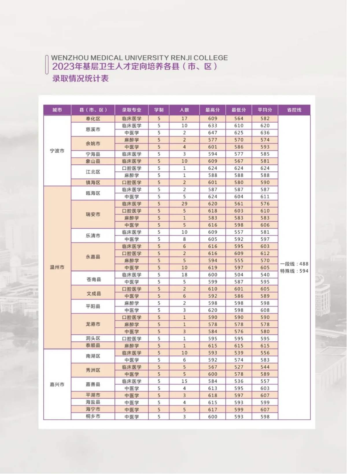 温州医科大学仁济学院 2021-2023年浙江省招生录取分数统计表 / 2023年基层卫生人才定向培养各县(市、区)录取分数统计 / 2021年-2023年外省录取分数统计