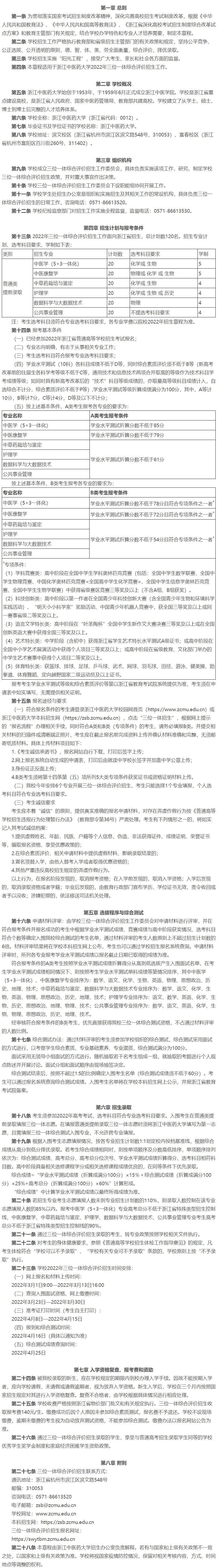 2021年 : 浙江中医药大学2022年三位一体综合评价招生章程