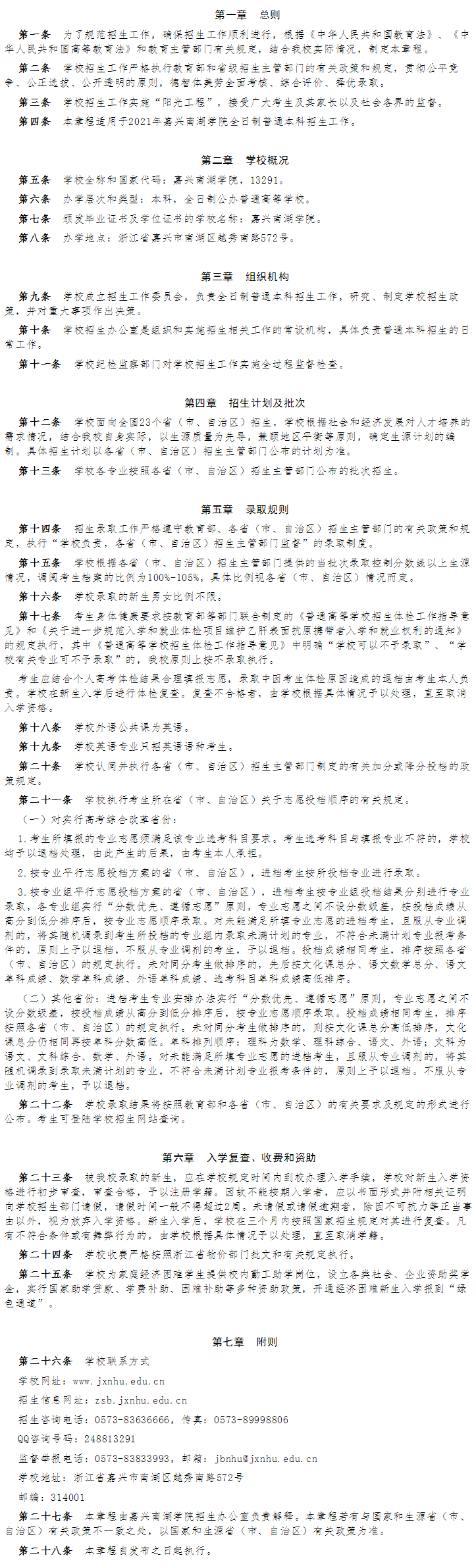 2022年 : 嘉兴南湖学院2022年普通高校招生章程