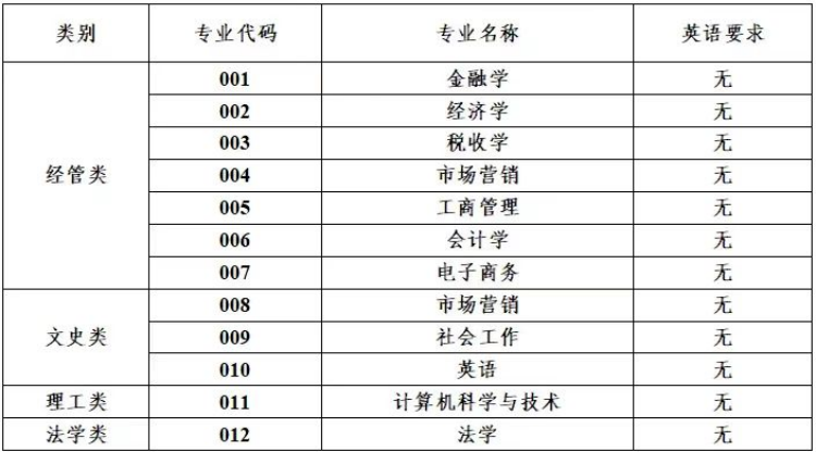 金融学:经管类报考类别内的高职高专专业均可报考。
