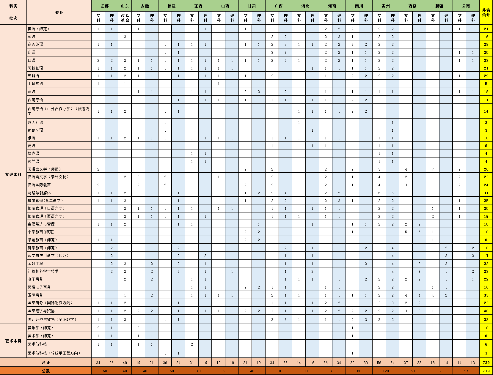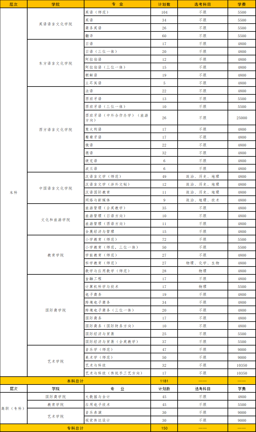 2022年 : 浙江外国语学院2022年浙江省 / 外省招生计划