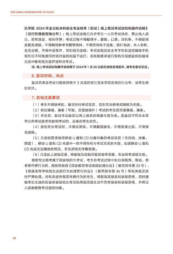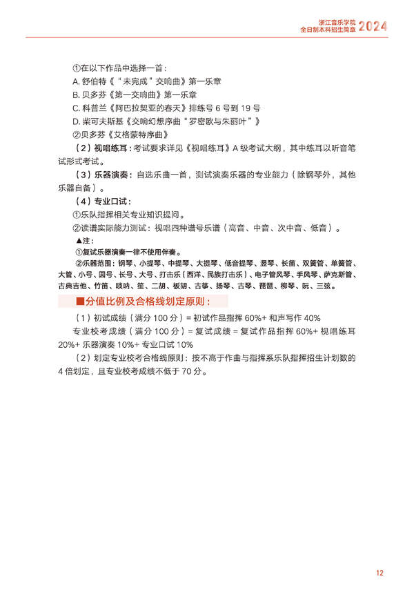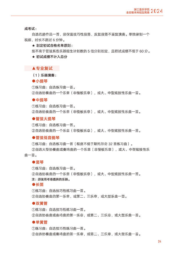 2024年 : 浙江音乐学院2024年全日制本科招生简章