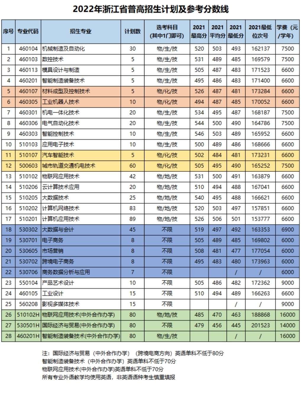 2022年 : 浙江机电职业技术大学-2022年各省市自治区招生计划