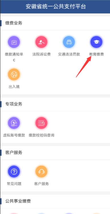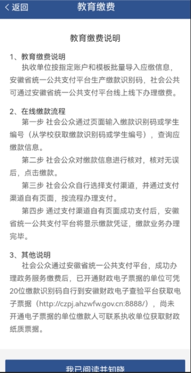 (二)点击“教育缴费”,在“教育缴费说明”页面点击下方“我已阅读并知晓”。