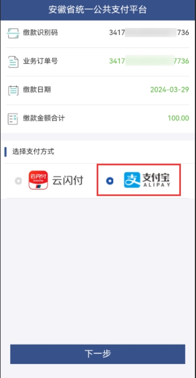 (四)点击“确认缴费”,选择“支付宝”完成缴费。