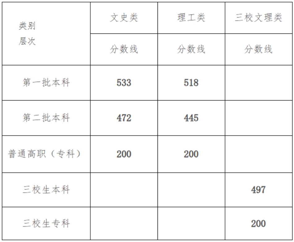 山西省2023年普通高校招生本科录取最低控制分数线(不含二批本科C类院校)公告