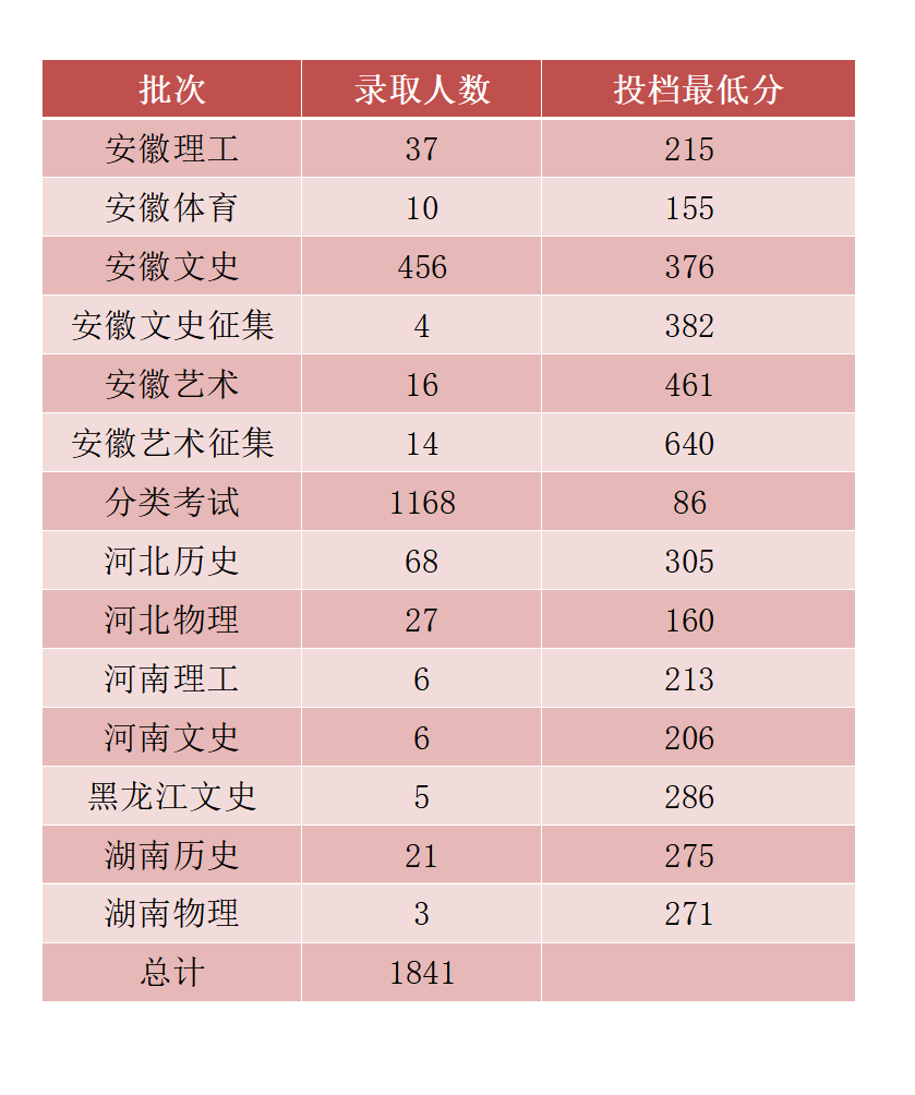 2022年 : 安徽中澳科技职业学院2022年分专业录取情况