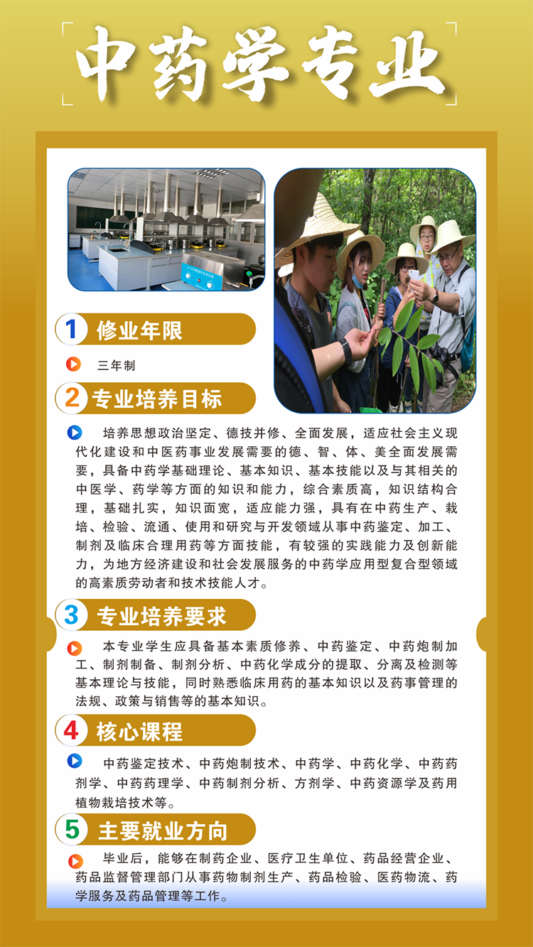 中医学专业培养掌握中医学的基本理论和专业技能以及现代医学基本知识,具有运用传统中医辨证论治体系,诊断和治疗常见病、多发病业务能力的高素质应用型中医专门人才。