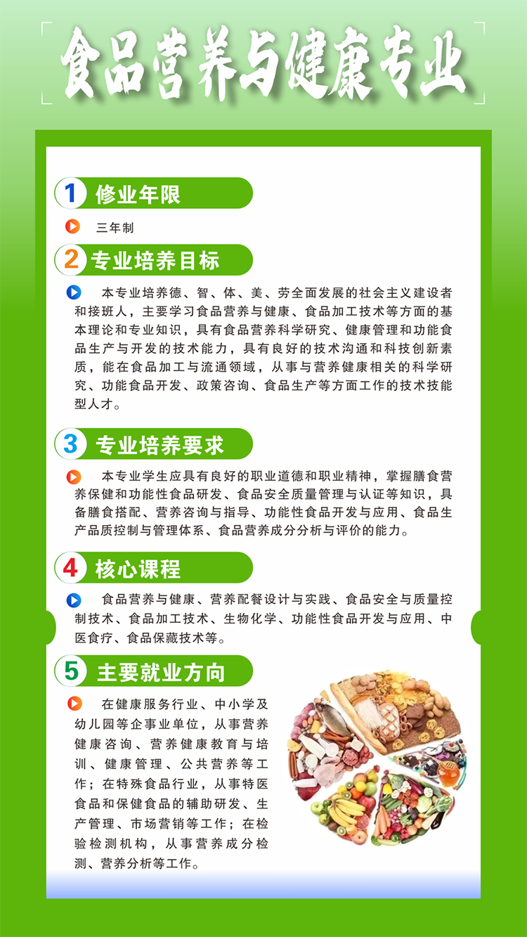 【培养目标】本专业培养德智体美劳全面发展,掌握扎实的科学文化基础和护理学知识,具备熟练运用基本护理技术等能力,具有敬佑生命、救死扶伤、甘于奉献、大爱无疆的职业精神及信息素养,能够从事整体护理及疾病预防保健等工作的高素质技术技能人才。