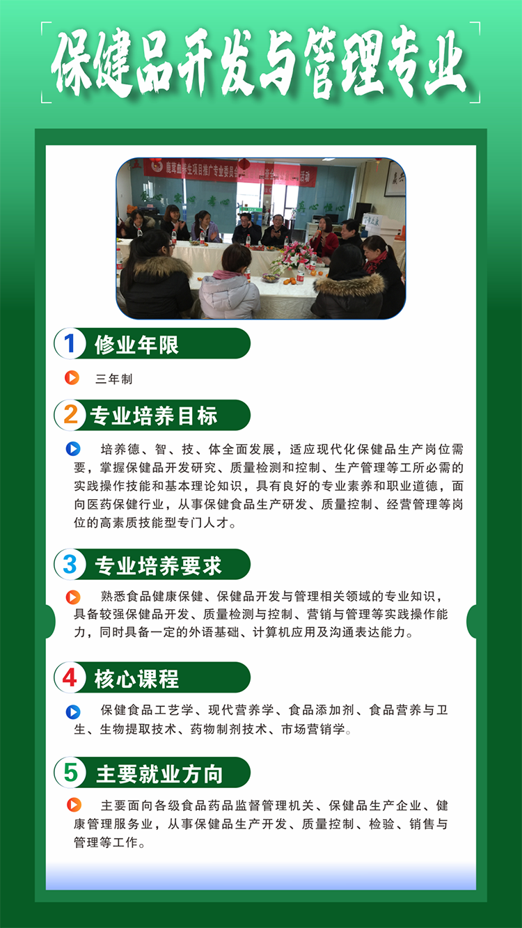 【培养目标】本专业培养德智体美劳全面发展,掌握扎实的科学文化基础和老年人医学、康复、保健等知识,具备老年健康评估、健康教育、营养膳食指导、康复保健、康乐活动策划组织和健康照护等能力,具有敬佑生命、救死扶伤、甘于奉献、大爱无疆的职业精神及信息素养,能够从事老年人健康评估、健康照护、康复保健、康乐活动策划组织和养老机构管理等工作的高素质技术技能人才。