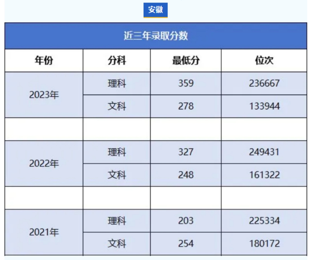 2024年 : 徽商职业学院2021年-2023年 安徽省、贵州省、河北省、四川省最低录取分数线及排名