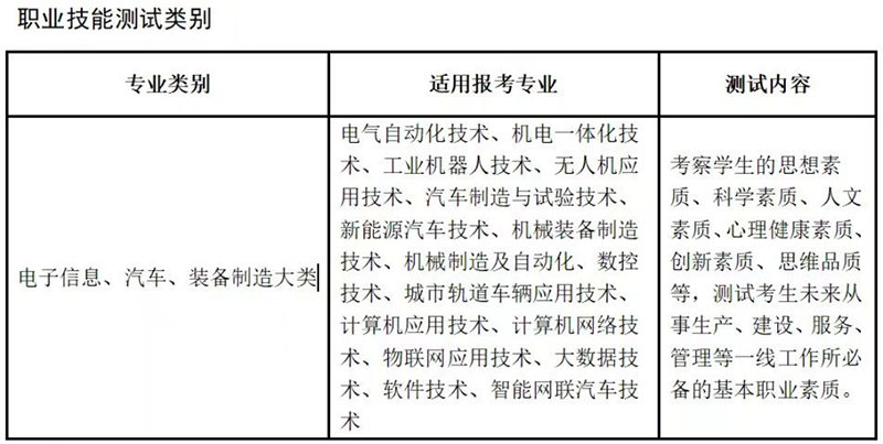 进行职业技能测试。测试内容及分类见附表。测试内容为日常生活或学习中的常识性问题和开放性问题,常识性问题主要涉及中职专业知识和文化知识常识,开放性问题无对错等客观标准,考生可根据自己的想法和思考回答。