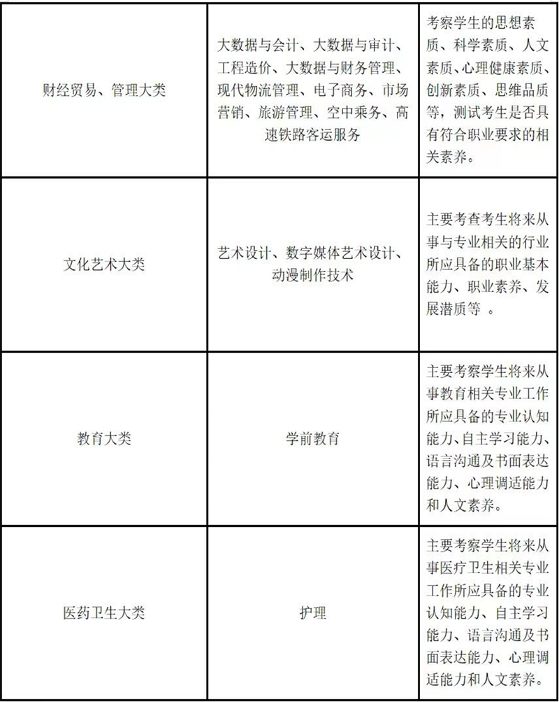 进行职业适应性测试。测试内容为日常生活或学习中的常识性问题和开放性问题,常识性问题主要涉及中学学科知识和文化知识常识;开放性问题无对错等客观标准,考生可根据自己的想法和思考回答。中职类考生主观问题可能涉及到专业内容。