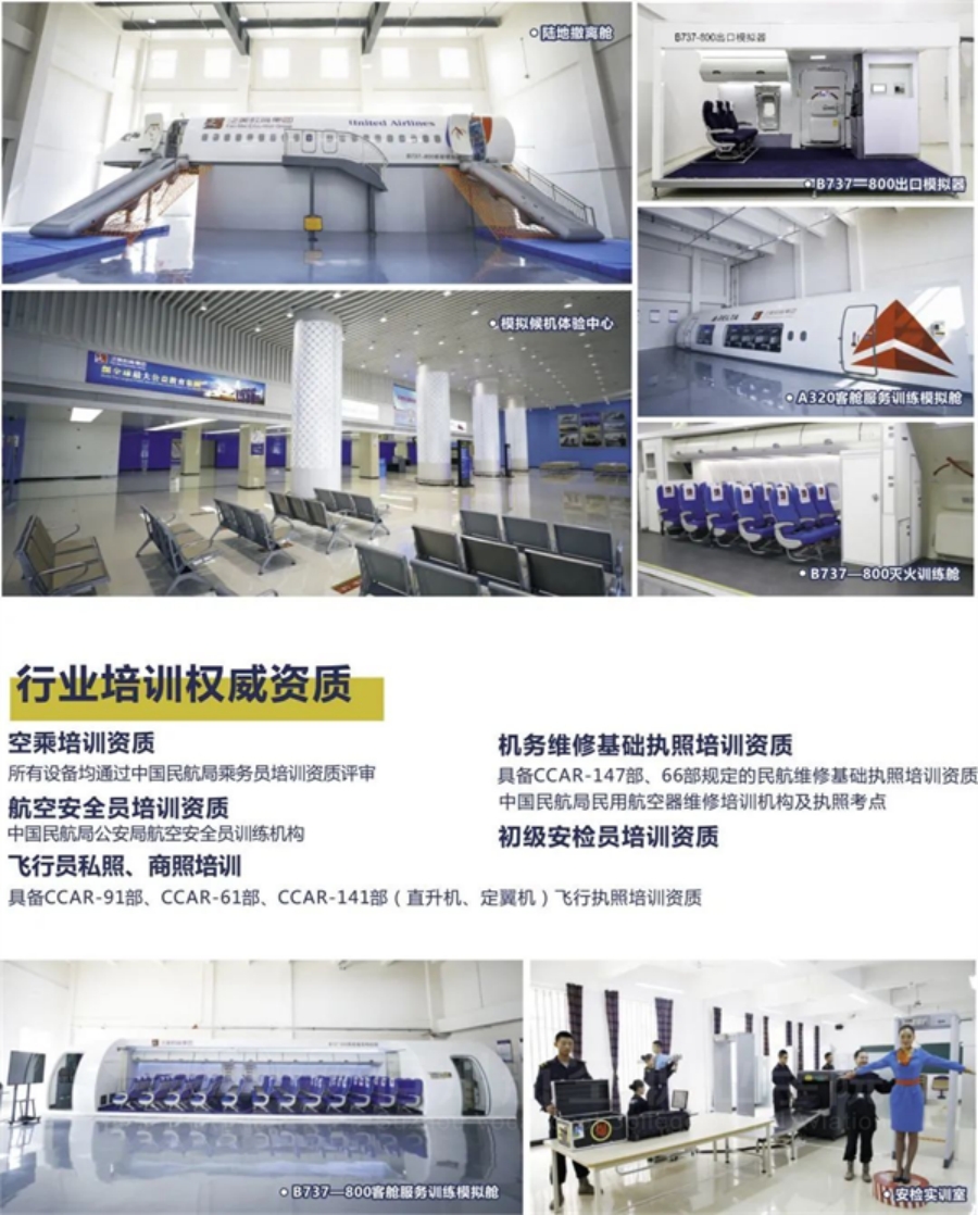 引进行业专家和IATA课程,拥有各类行业培训资质。航空实训中心配置领先的航空实训设备,飞行基地与100余架飞机保障训练,稳定的校外实训实习基地确保专业培训与行业无缝对接。