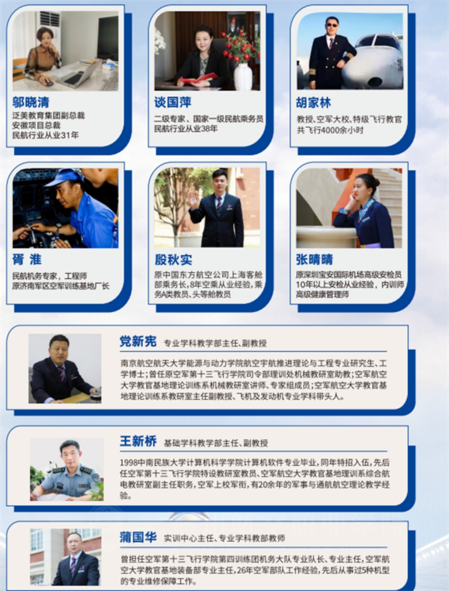 学院立足安徽、面向长三角、服务航空产业,培养高素质技术技能型人才,开设无人机应用技术、直升机驾驶技术、定翼机驾驶技术、空中乘务、民航安全技术管理、飞机机电设备维修、机场运行服务与管理、人工智能技术应用、网络营销与直播电商等十五大专业。