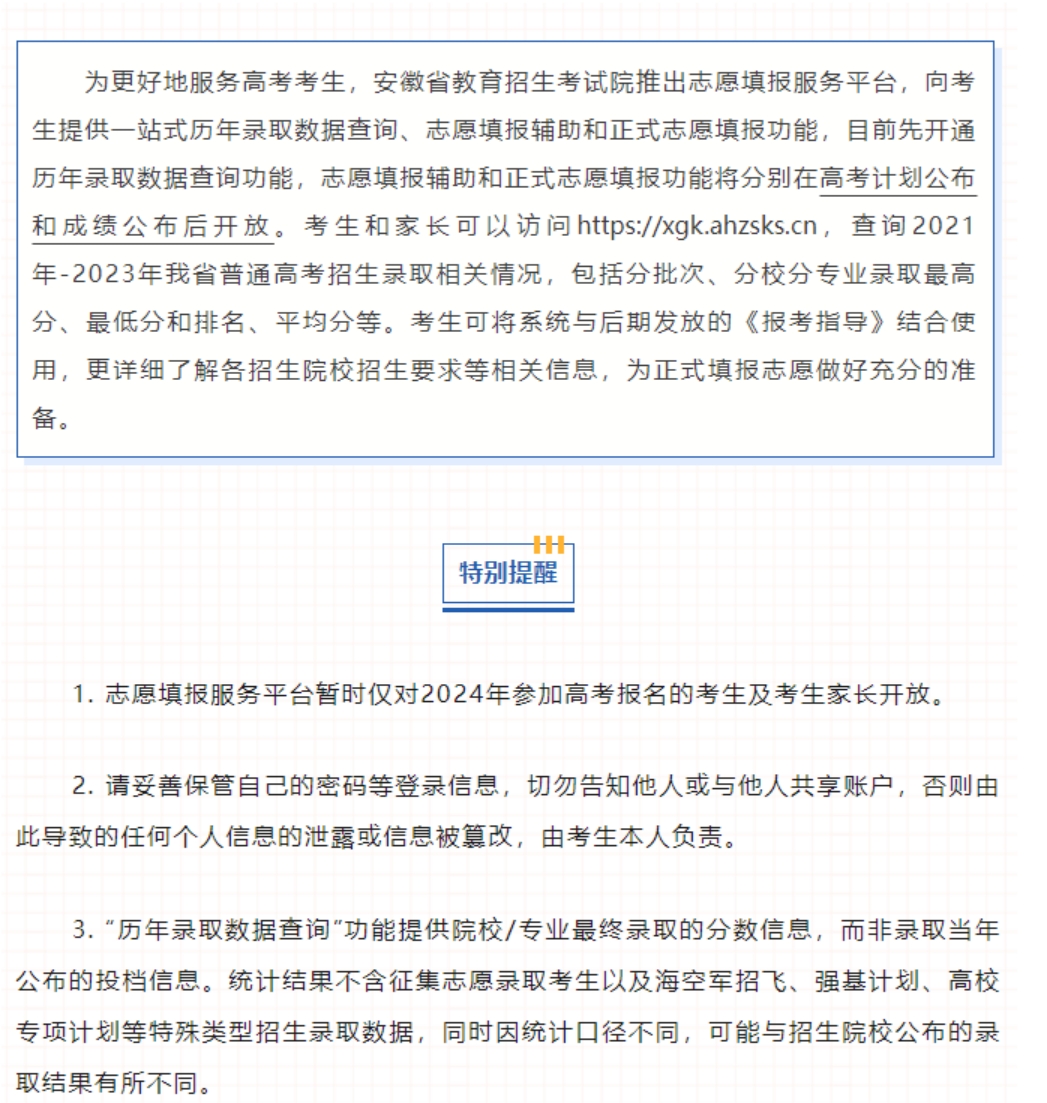 2024年 : 新高考|安徽省考生志愿填报服务平台使用指南