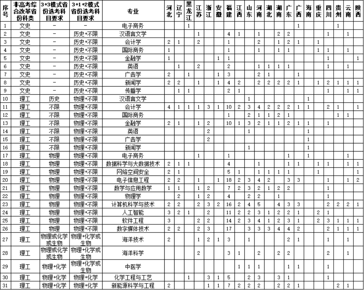 厦门大学马来西亚分校2023年招生计划纳入厦门大学2023年招生总规模,在本科批录取。各省招生计划如下:
