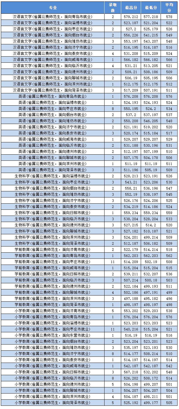 2021年 : 枣庄学院2021年公费师范生分专业录取分数明细)