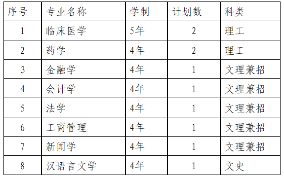 我校招生总计划10人,分专业招生计划请见下表,各专业招生计划可打通使用,也可视生源情况超额录取。