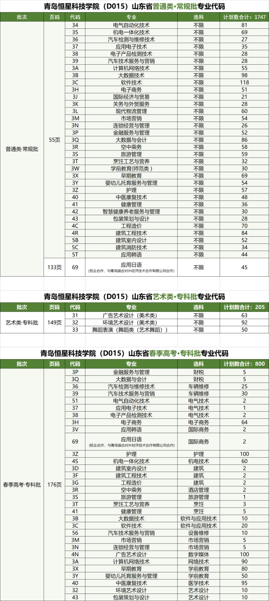 2023年 : 青岛恒星科技学院-2023年(山东省专科)招生计划