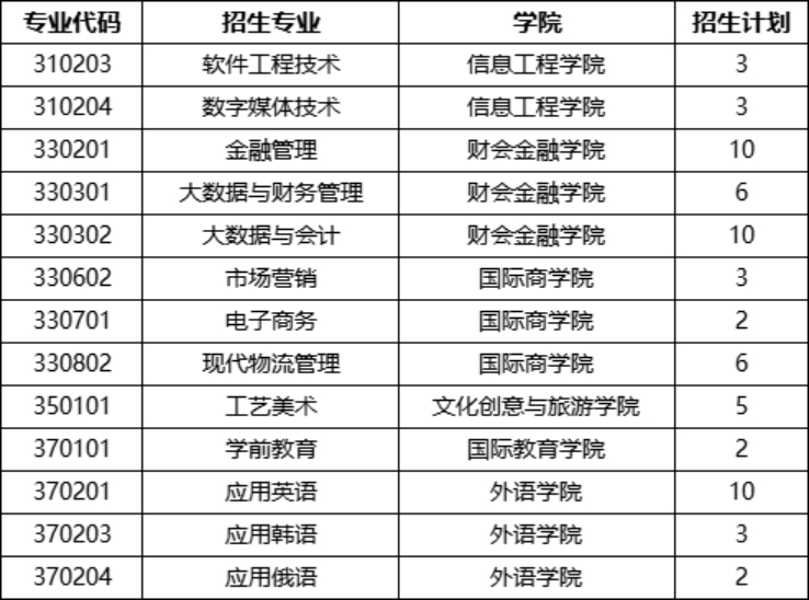 山东外国语职业技术大学2022年专升本建档立卡专项计划