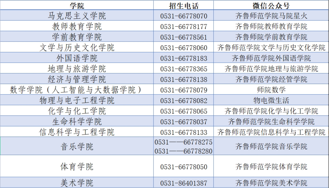 通讯地址:济南市章丘区文博路2号齐鲁师范学院招生办公室