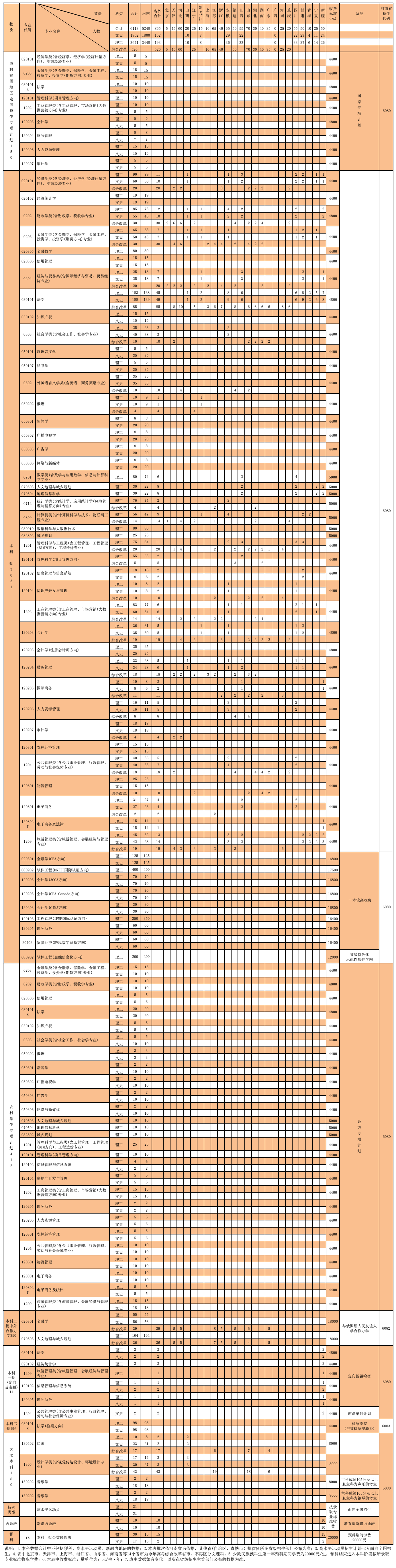2021年 : 河南财经政法大学2021年普通本科分专业招生计划表