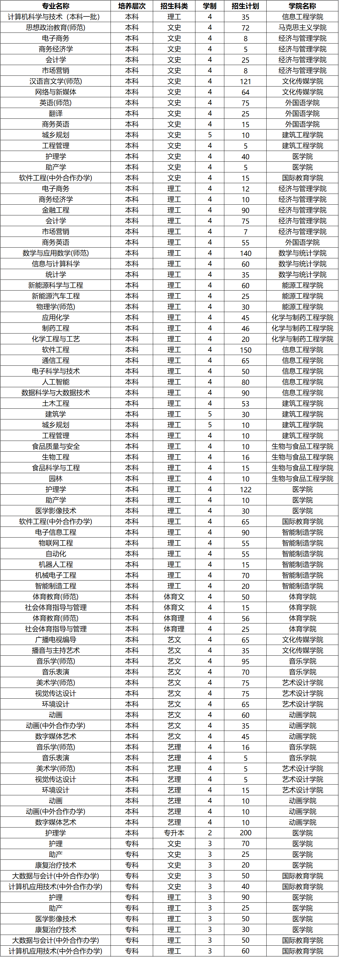 2022年 : 黄淮学院2022年面向河南省招生计划一览表