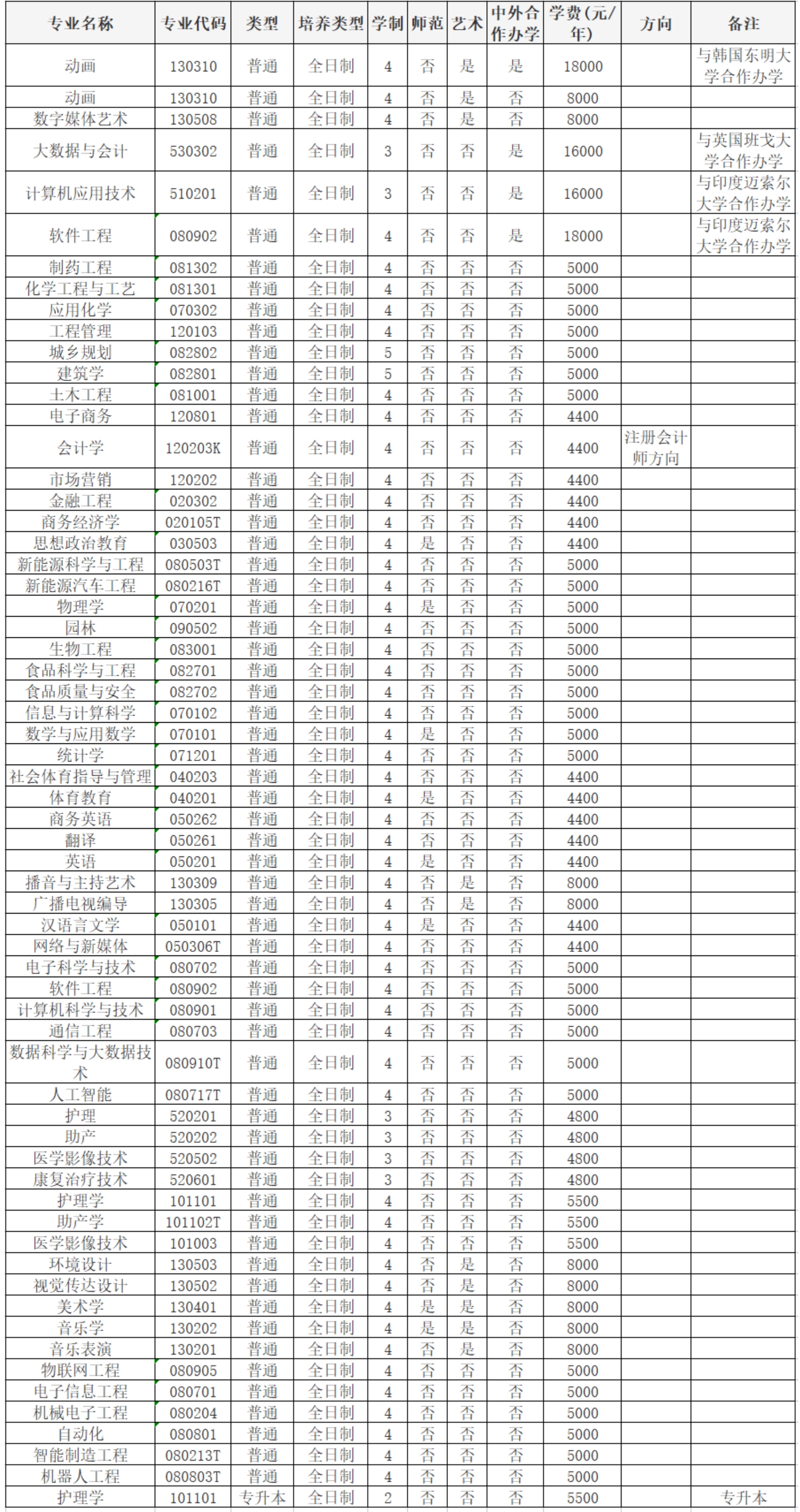 4.我校本科合作办学各专业学费标准每生每年18000元。