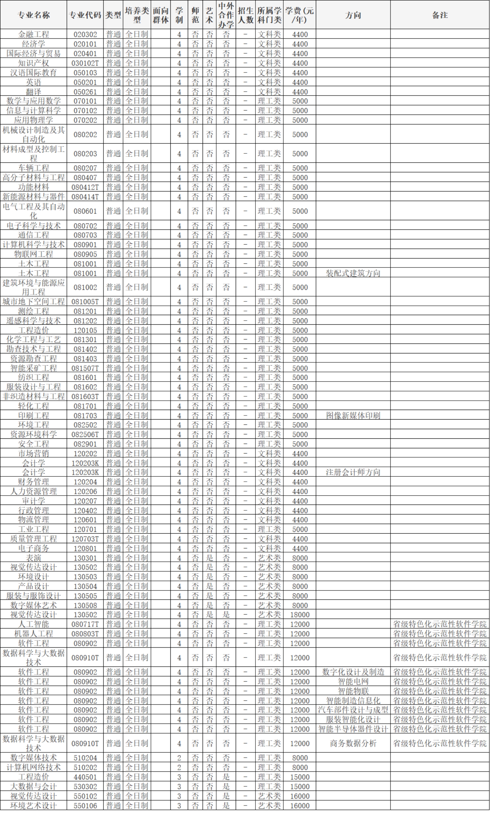 3.中外合作办学专业中,视觉传达设计(艺术类本科)、视觉传达设计(艺术类专科)、环境艺术设计(艺术类专科)、大数据与会计(专科)、工程造价(专科)等专业,合作方院校为澳大利亚堪培拉大学。