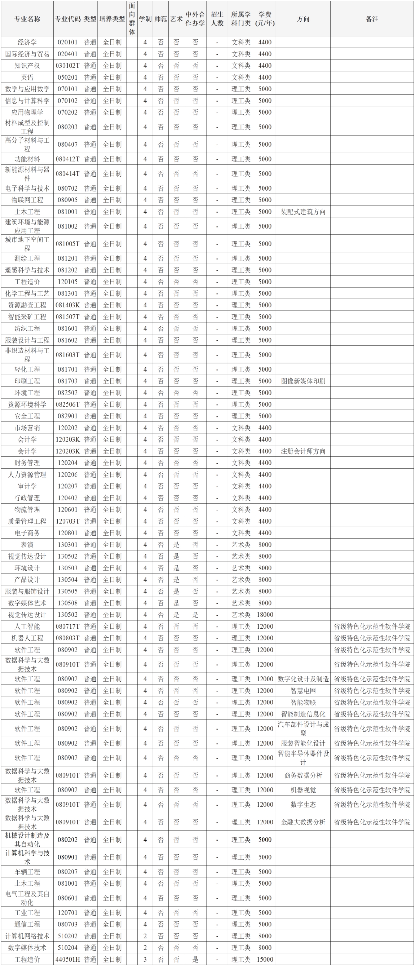 本科专业:艺术类8000元/年•生,理工类5000元/年•生,文史类4400元/年•生;其他专业:省级示范性软件学院本科专业12000元/年•生,专科专业8000元/年•生;中外合作办学专业:艺术本科专业学费18000元/年•生,普通专科专业学费15000元/年•生。